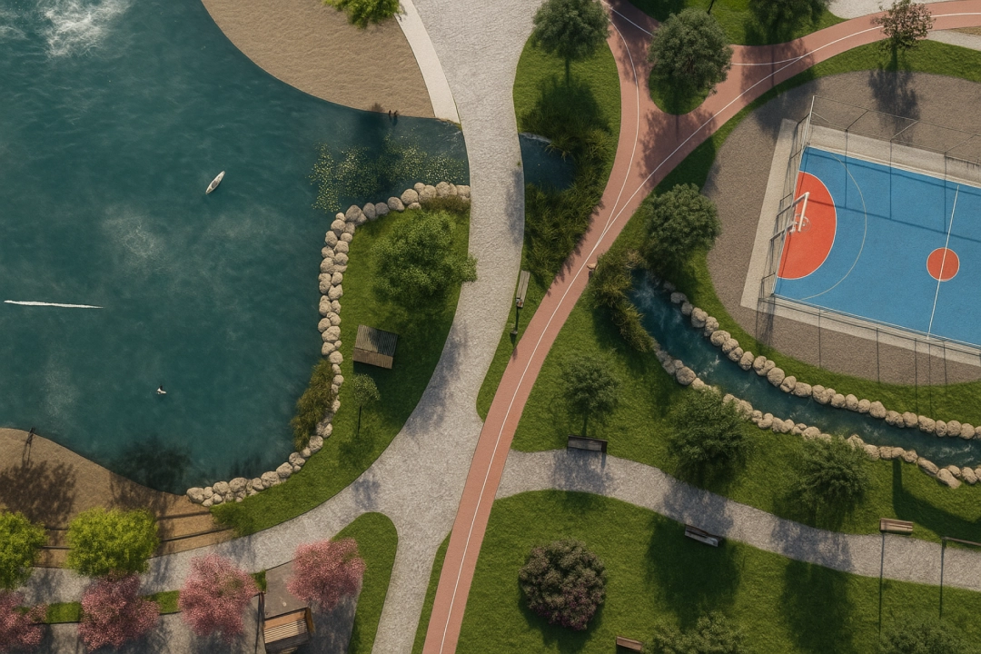Територія понад 16 гектарів, власна набережна, 5 км велодоріжок, дитячі майданчики, спортзал, тенісний корт, баскетбол, велодоріжки та workout-зони - все для активного відпочинку.