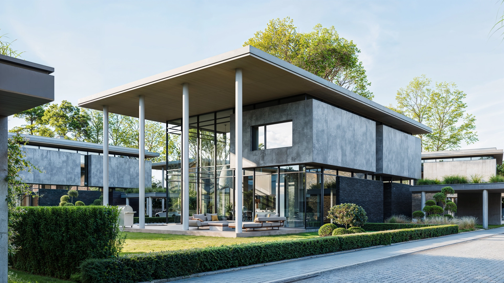 • Вентильований фасад з Італійського широкоформатного керамограніту та натурального каменю з Іспанії.