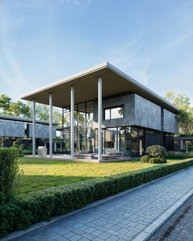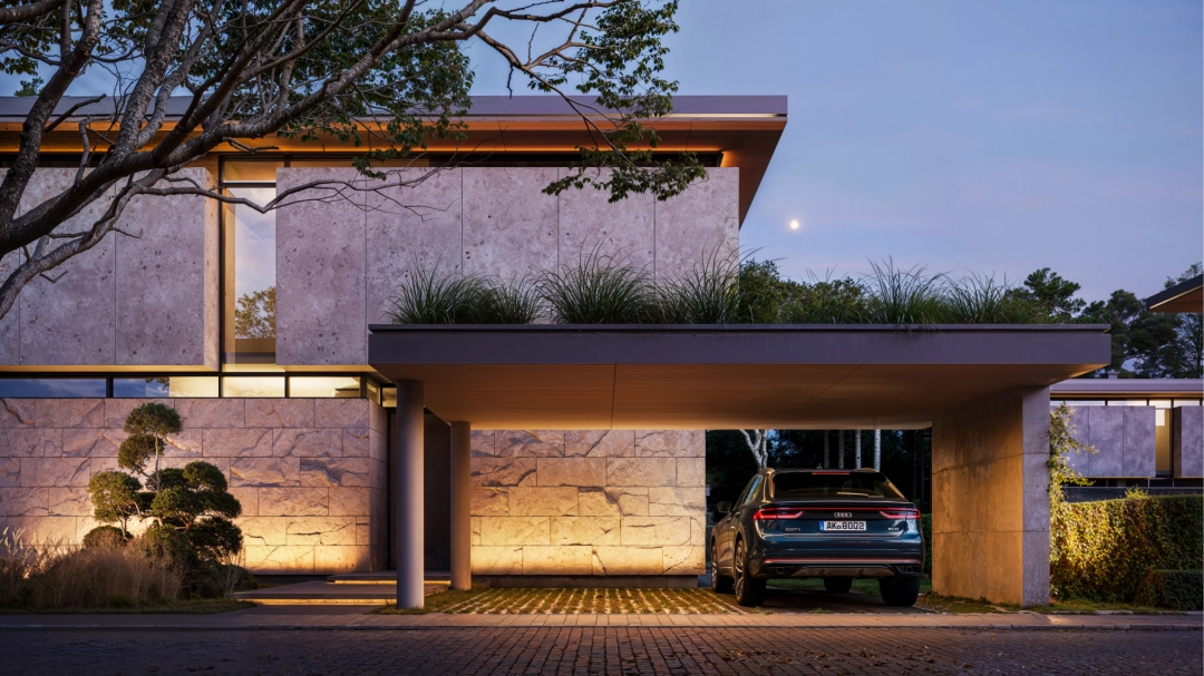 • Встановлення навісу для 2 авто, залізобетонні опори та перекриття.