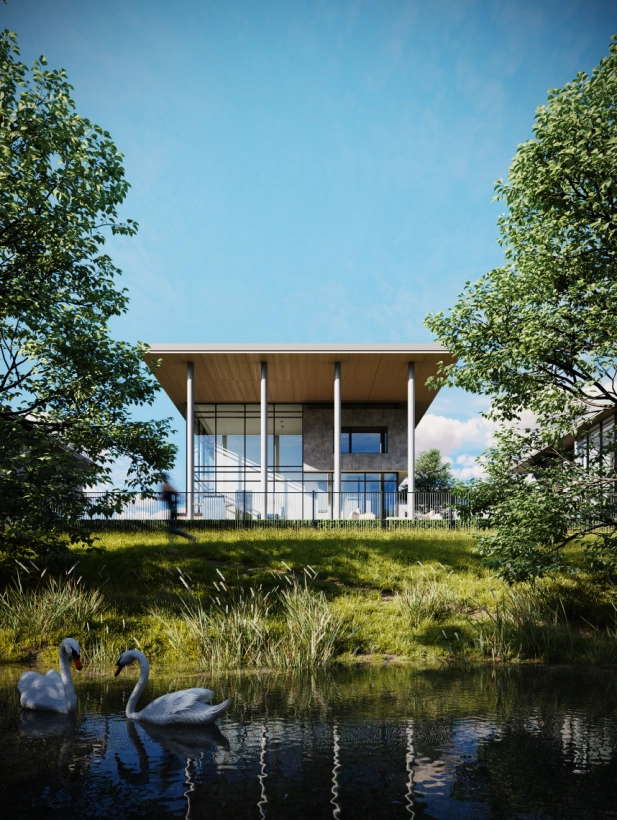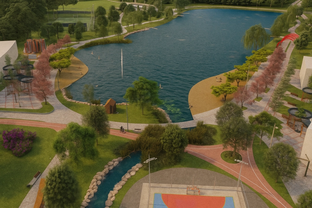 Котеджне містечко біля озера з 3-ма гектарами зелених зон.